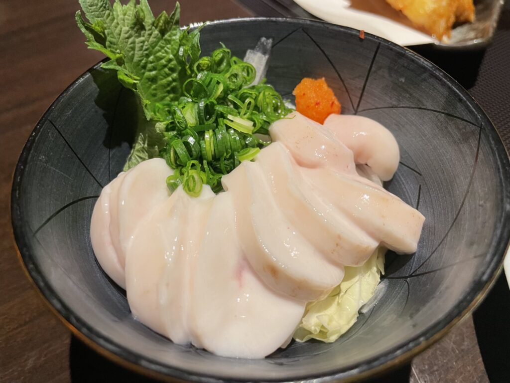 ふぐの白子は、他の魚の白子とは比較にならないほどの旨味を持っています。口に入れた瞬間、とろけるような滑らかな舌触りが広がり、濃厚な味わいが口いっぱいに広がります。外側はプリプリとした弾力があり、中身はトロトロとした独特の食感が特徴です。